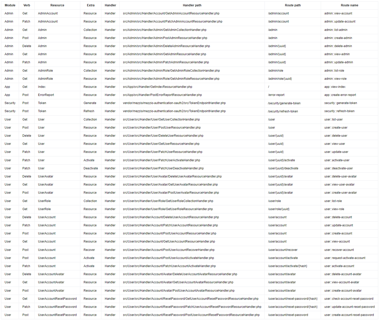 The full mapping of the handlers and their current paths and actions can be found in the full naming convention table.